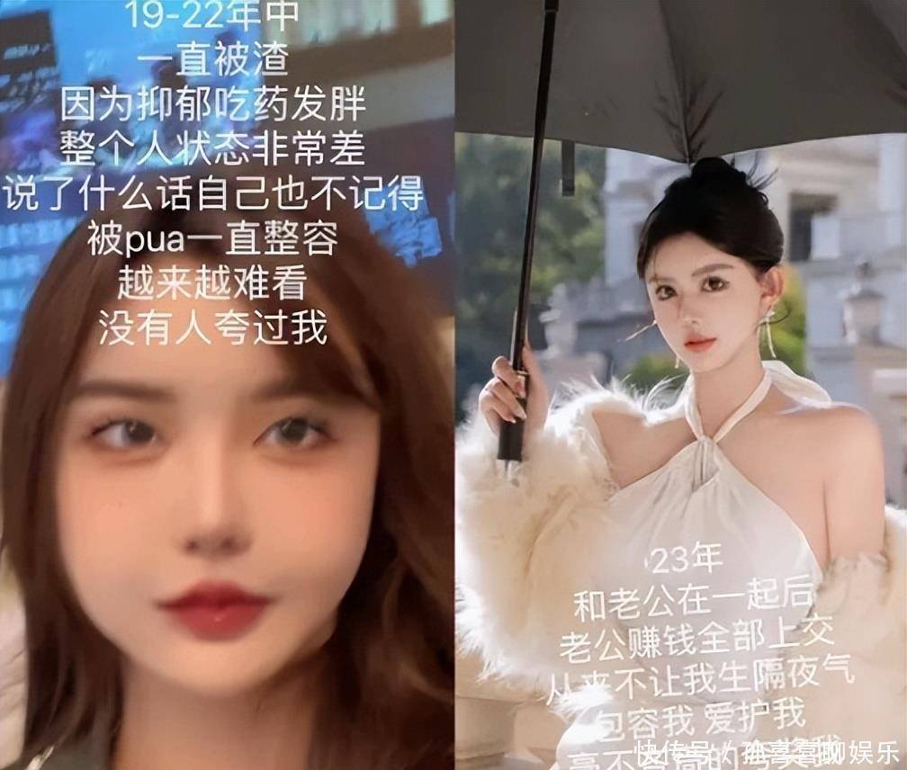 第二段:2019年跟小猪先生邱斯钿领证,婚礼当天直播涨粉320万,结果婚后第八天就爆出对方出轨,互撕到飞起,年底离了。2020年又复婚,2021年彻底离干净。